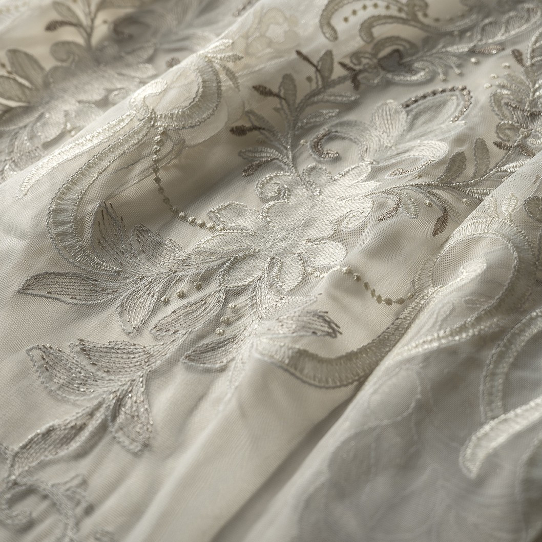 Záclona Sarelli Elegance je navržena jako nenápadný, ale výrazný prvek interiéru. Pracuje s jemnou kresbou vzoru a světlem tak, aby prostor působil otevřeně, klidně a vizuálně čistě.